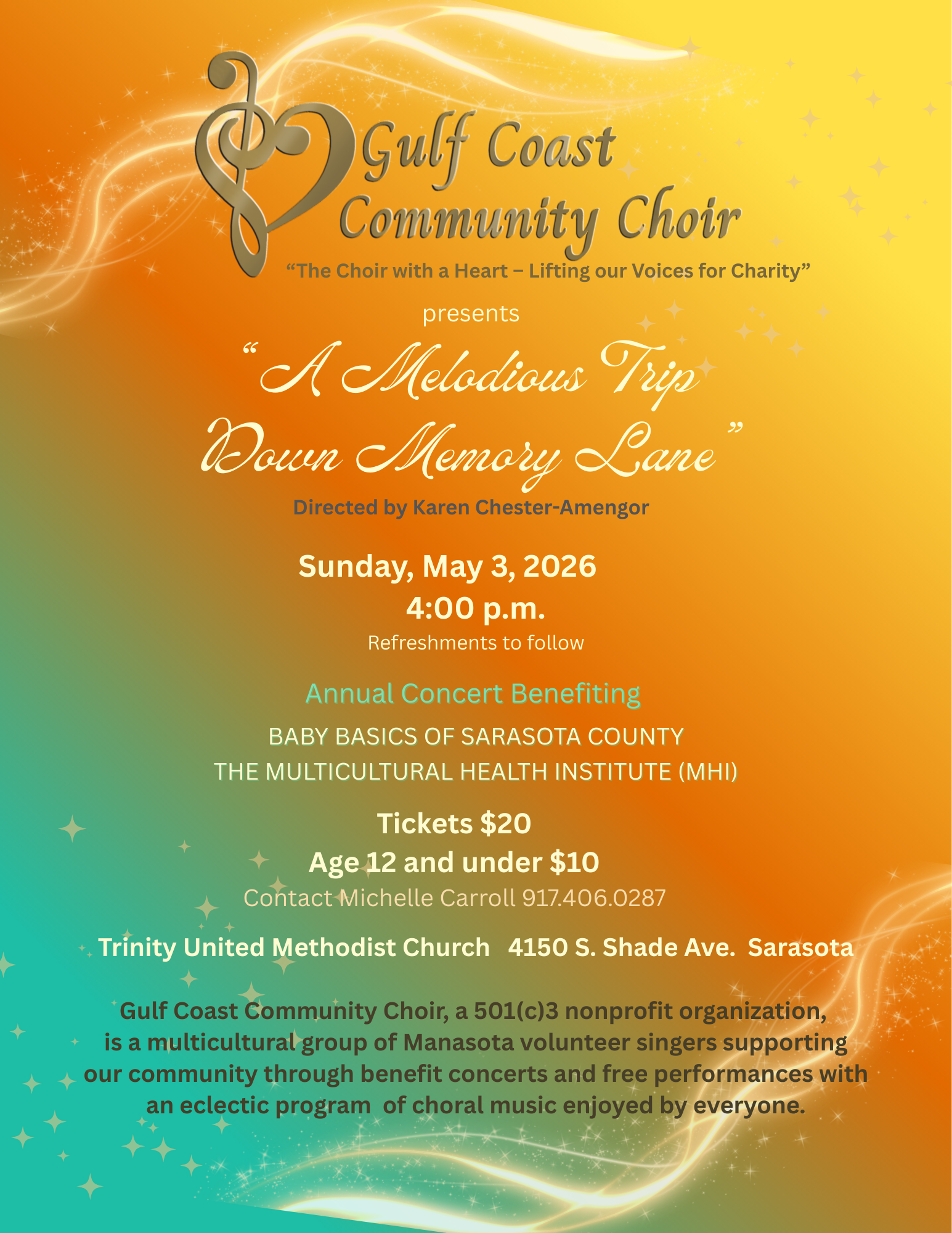 Gulf Coast Community Choir The Choir With A Heart - Lifting Our Voices For Charity Learn More Uplift. Inspire. Unite. The Gulf Coast Community Choir is dedicated to fostering joy and unity and celebrating the beauty of diversity as we serve our communitythrough benefit concerts and free performances 37 Local Charities Benefited from our Annual Fundraising Concerts 97 Free Community Performancessince 2001 Be a Part of Our Story The Universal Language of Music Our passion is as inspiring as our mission. More About Us Photo Courtesy of Vickie Oldham and Melanie Thomas Experience the Joy of Music Free Community Concerts We perform several concerts per year free-of-charge at venues in our Gulf Coast communities. See Dates Annual Fundraising Concert Over the past 26 years the proceeds from our annual fundraising concert have benefited local charities. Buy Tickets Support Us Donations and annual sponsorships are vital in helping us to uplift and unite people from all walks of life. Get Involved “Music is a tremendous force for bringing people together.” Dr. Carroll Buchanan Choir Founder Talk To Us Are you interested in learning more about the Gulf Coast Community Choir? We would love to hear from you. Contact Us