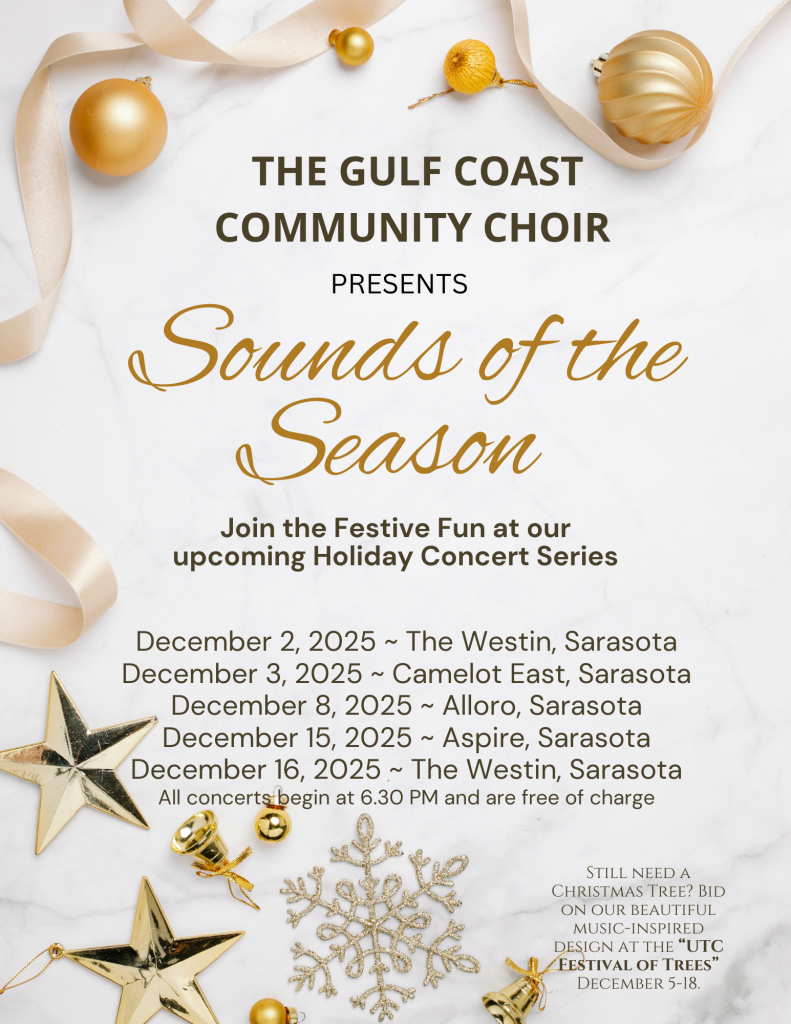 Media Gallery Our Story in Pictures 2026 Celebrating the Centennial of the Historic Leonard Reid House in Sarasota Reid House Event Photos Courtesy of Vickie Oldham and Melanie Thomas 2025 TV-Appearance with Renee James Gilmore, host of ABC7’s Empowering Voices Program. Impressions from the 25th Anniversary Concert in April 2025 2024 2023 Archival Photos We Are So Much More Than A Choir The Gulf Coast Community Choir consists of a diverse group of people that genuinely enjoys spreading joy in our community.Are you interested in learning more about us? Contact Us